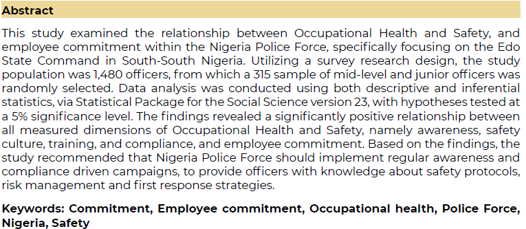 Occupational Health and Safety and Employee Commitment in the Police Force: Evidence from South-South Nigeria